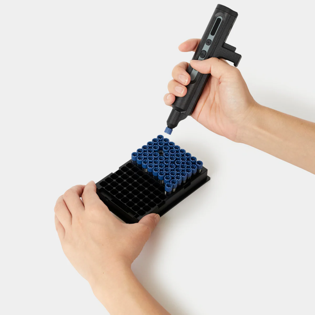 二次元バーコード付チューブは、確立したワークフローを確実に高い生産性で実施することに最適な選択肢と言えます。特に自動化との親和性が高いため、分注装置やPCR、各種検査装置と連携する場合に、ヒューマンエラーを排除するとともに、スループットの向上が期待できます。