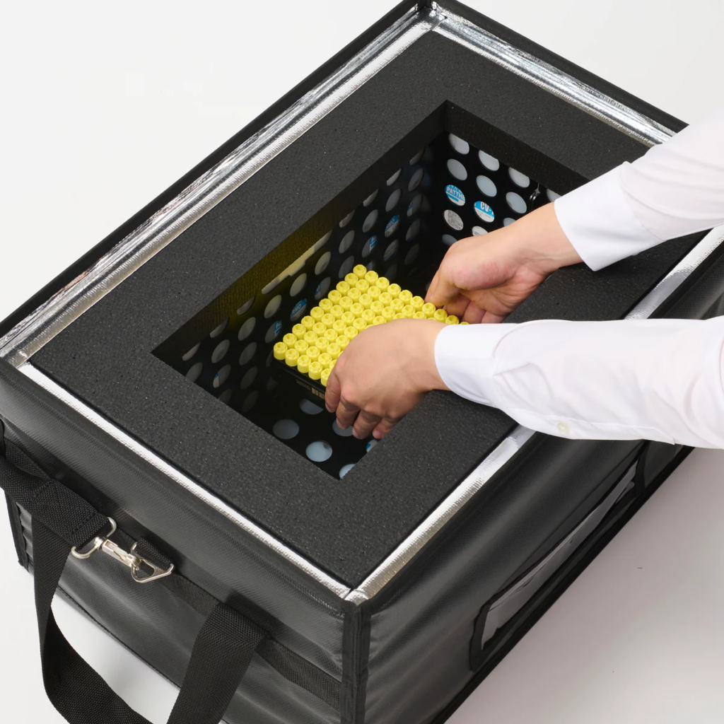 弊社では、ドライアイスを使用せず、-80℃フリーザーで繰り返し利用できる超低温蓄冷材を用いた保冷パッケージをご用意しており、棚卸や整理などに有効にご利用いただけます。